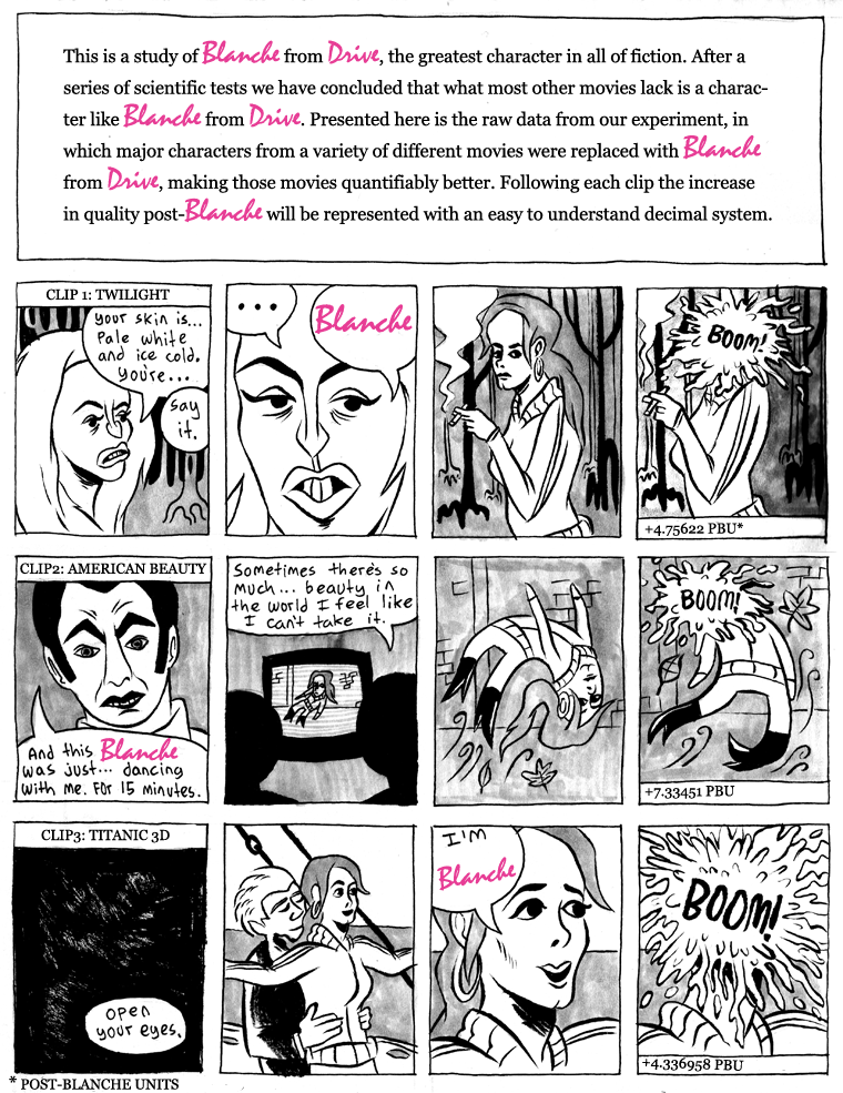 I’m sick and tired so no floaty till later in the week. For now have a comic about Blanche. From Drive.